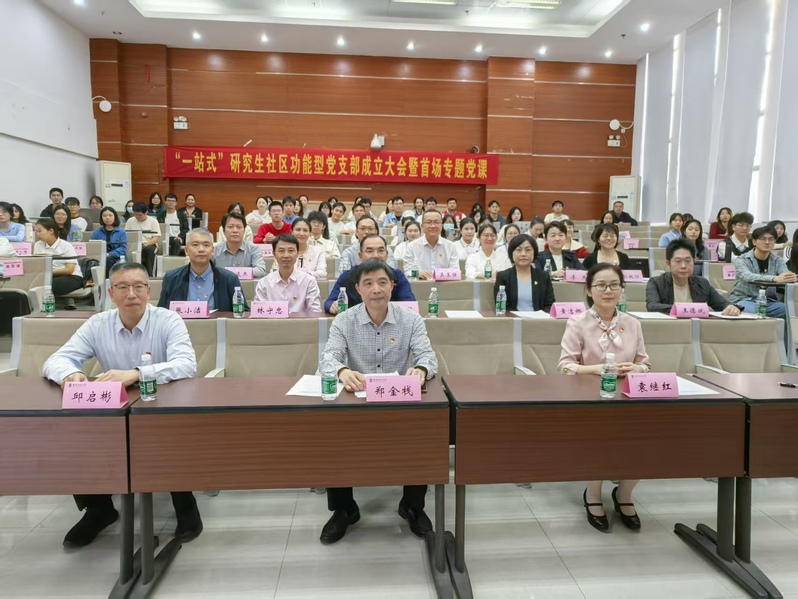 12月9日,我校“一站式”研究生社区功能型党支部成立大会暨首场专题党课在广州校区尚学楼110阶梯课室召开。校党委常委、组织部部长、机关党委书记郑金栈,机关党委专职副书记邱启彬,研究生工作部部长、研究生院院长袁继红,各研究生培养单位党委书记,组织部分管党建工作副部长及相关人员,研究生工作部分管研究生思政工作副部长及相关人员,全体研究生辅导员以及“一站式”研究生社区功能型党支部全体党员参会。袁继红主持会议。