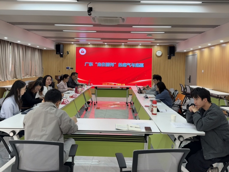 会上,各位发言人围绕主题依次作报告,分别从文化、经济、历史、治理等多维度全面剖析广东“走在前列”的深层逻辑。矫萍聚焦粤港澳大湾区建设,围绕规则衔接、科创协同、产业融合等重点领域,提出广东发挥主力军与火车头作用的实践路径;张琼以赵佗、张九龄、杨孚等多位历史名人的实干事迹,阐释岭南文化务实进取、兼容并蓄的核心特质;黄素娟回溯近代广东创新实践,详解陈启源机器缫丝业推动产业升级、粤商新式百货公司引领消费变革的历史经验;廖志伟围绕粤商团体的组织化特征与社会功能,展现其重要作用;最后,张曙光教授围绕广东发展及中国现代化,涉及广东地理位置重要性、现代化内生动力、经济发展等作会议总结。