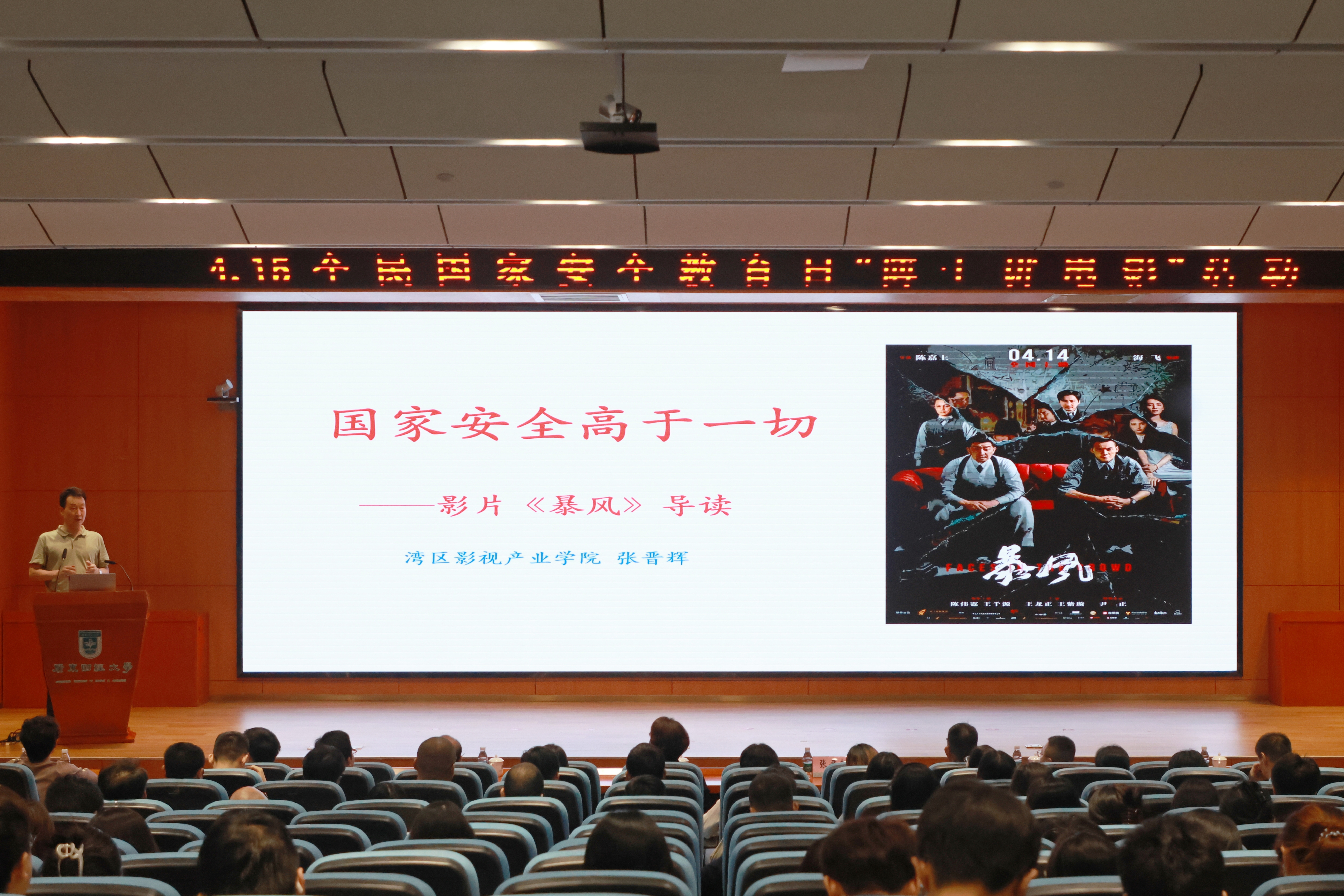 下午,“博士讲电影”国家安全教育专题活动在正心堂举办,300余名师生及来宾共同观看国安题材影片《暴风》。湾区影视产业学院张晋辉教授现场导赏,从历史背景、叙事结构、镜头语言等方面进行专业解读,带领师生重温隐蔽战线的峥嵘岁月,感悟革命先辈坚守信仰、守护国家安全的赤诚初心。师生在光影中接受精神熏陶,进一步厚植家国情怀、强化国家安全意识。大家纷纷表示,将以革命先辈为榜样,自觉扛起维护国家安全的责任使命。