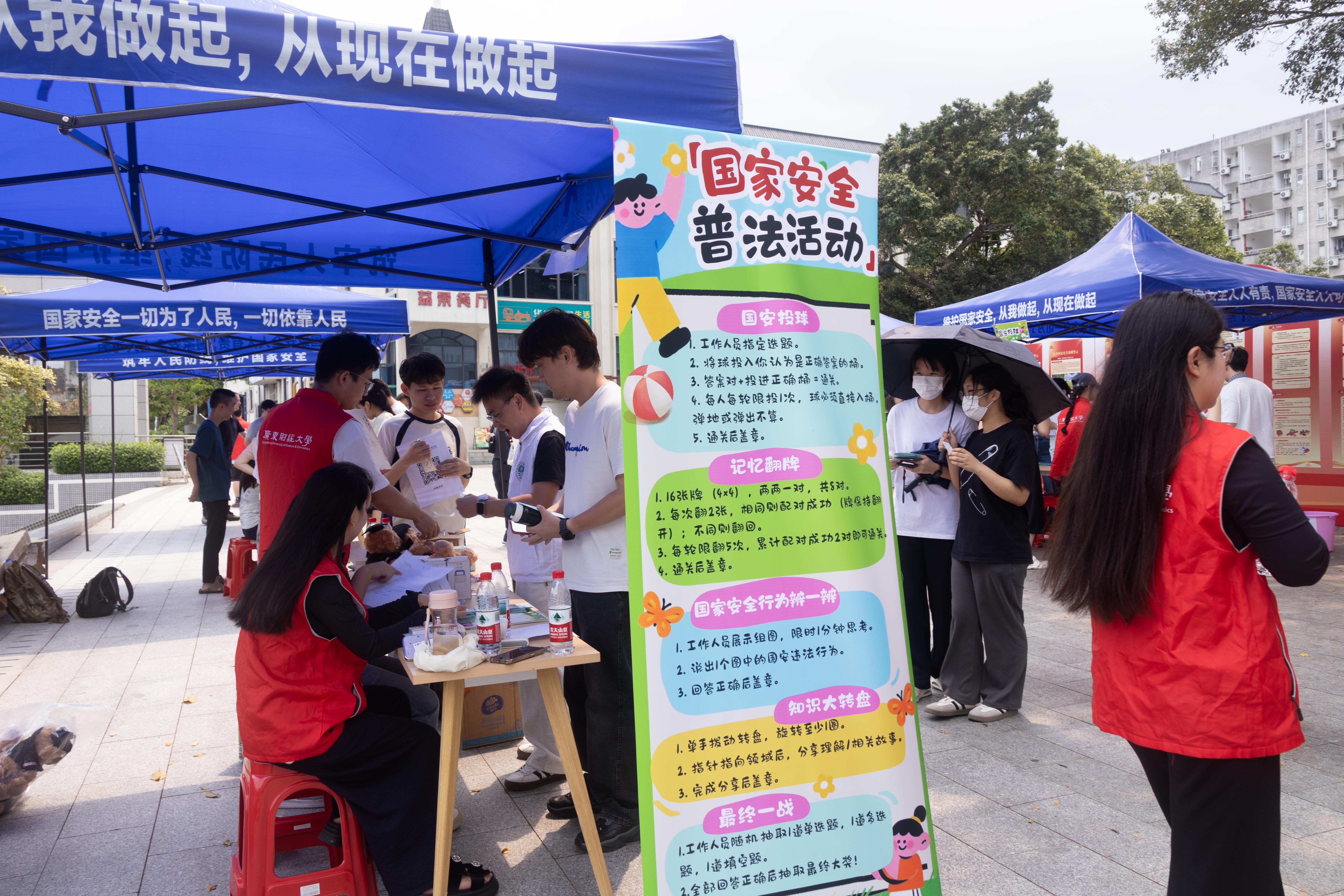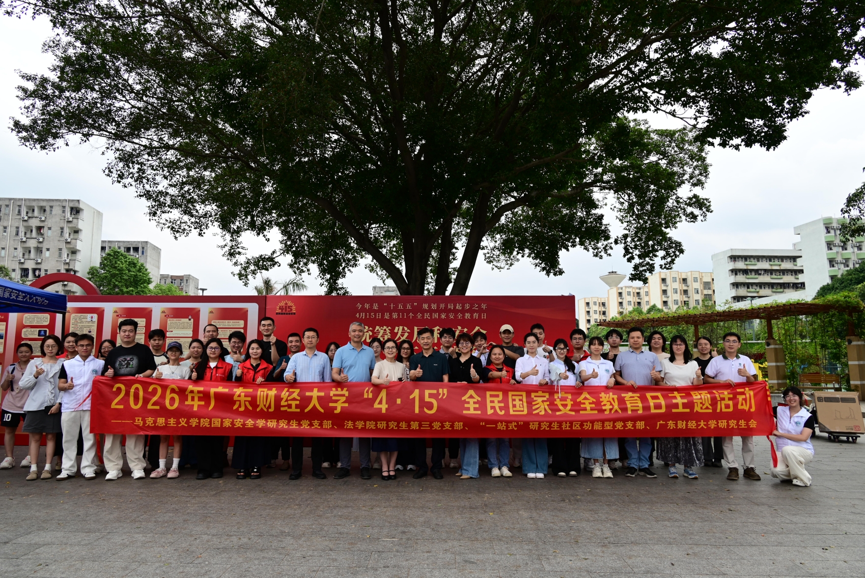 2026年是“十五五”开局之年,也是第11个全民国家安全教育日。为深入学习贯彻党的二十届四中全会精神,全面践行总体国家安全观,落实“全面加强国家安全教育,增强全民国家安全意识和素养”重要部署,4月15日,由研究生工作部、研究生院;国家安全与发展研究院、马克思主义学院、法学院联合开展的“筑牢国安防线,广财青年践行”国家安全教育系列主题活动在学校大湾体育公园及正心堂举行。本次活动以沉浸式互动、场景化宣讲、影视化教育为载体,将普法宣传、青年宣讲、主题观影有机融合,以创新形式推动国家安全教育走进青年、深入人心。